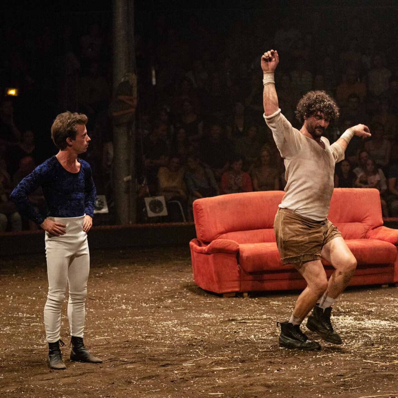 Victor et Kati sont repartis pour cette nouvelle création « Saison de cirque » à la rencontre de l’Autre : d’autres pistes, d’autres artistes, d’autres ambiances, d’autres mondes. Heureux de convoquer des artistes de cœur, connaissances anciennes, artistes remarquables et véritables « frères de lait » ils inventent leur saison de cirque, ils en distillent l’essence même et nous montrent des artistes d’excellence mis à nu qui n’hésitent pas à raconter l’histoire de leur corps et de leurs fragilités. Pendant, avant et après la répétition, pendant avant et après le spectacle cette vie de cirque est rapportée là dans sa forme brute grâce à l’incandescence de leur énergie ! Saison de Cirque nous conduit aux portes d’une forme nouvelle et indéfinissable de cirque, où la vie dédiée à la piste se livre en toute intimité.